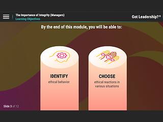 15 Minutes Level: IntermediateAs a leader, you have a responsibility to promote a culture of integrity in your organization. By the end of this module, you will be able to identify ethical behavior and choose ethical reactions in various situations.